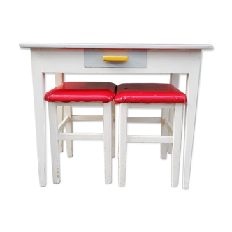 Set desk - beautiful line child chair, Elegant and Airy, Around 1960, the set is made of beech wood, stage covered Formica - beautifully crafted with slight and minimal traces of use. Practical and comfortable this set will suit children from 2 to 6 years old. The price is for the table and seat Chair size 31cm wide, 30cm in seat height and 58cm in total height. Table size: height 57 cm / width 59 cm / depth 40 cm This article may take some time to prepare. Contact the shop to find out when it will be sent.