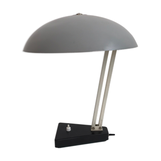 Black Bauhaus style desk lamp by Hala. The position of the lamp can easily be adjusted, it moves well back and forth, see photos. The lamp is made entirely of metal and has a black lacquer. The desk lamp requires an E27 bulb. [Condition] Very well. The lamp still looks great, only very minor wear. [Dimensions] ø Lampshade: 26 cm Height (adjustable) : 29 cm