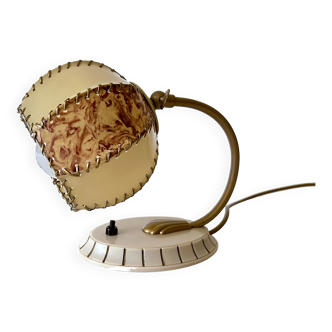 Old lamp from the 60s in perfect working order. Works with a bayonet bulb. The lampshade is original (a trace of use see photo) H 26 diam foot base 11.5 cm.