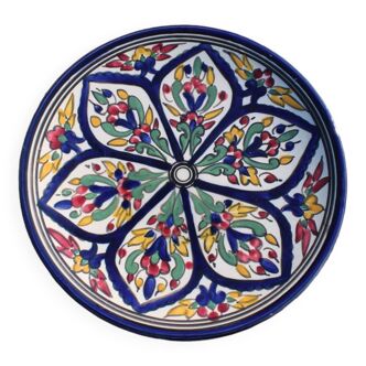 Large round wall dish from tunisia brought back to the 60's, at the center of this decorative pottery glazed "nabeul" in arabic calligraphy. He's in great shape. Diameter 31.8 cm, height 5.4 cm.