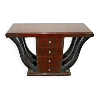 Very pretty and sober art deco worker, oak in very good condition. Has 5 drawers. Note a little wear on the top tray without gravity. Beautifully decorative.