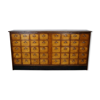 Mahogany cardboard cabinet in the restoration style, a drawer in the upper belt topped with a leather-covered tray and ten cardboard cabinets with green leather-covered flaps with gold decoration (l 43. D 33. H 14). The cabinet is in very good general condition as is the leather (minor wear and scratches from use) the flaps work perfectly. Beautiful cabinetmaking from the 60s.