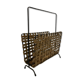 Magazine rack 1970. Structure in steel and wood. Good condition. Height 38 cm. Width 44 cm depth 20 cm.