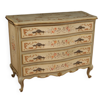 Chest 3 drawers florentine / venetian floral decoration with curved feet. Some traces of wear.