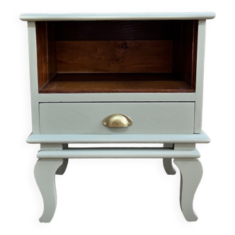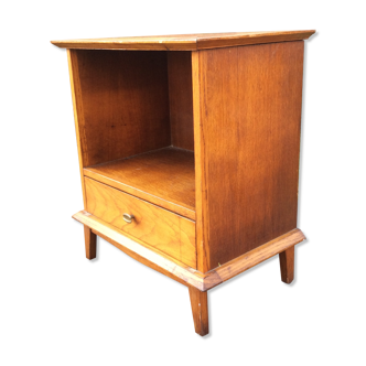 Wooden bedside of the 50s with compass legs - drawer with brass button - height 55 cm X width 55 cm X depth 30 cm.