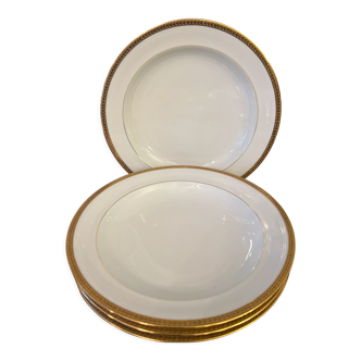Charming set of 8 ivory earthenware plates from the Sarreguemines factory, fretwork model. Diameter: 22.5 cm (≈ 8.85") Type: dessert plates Condition: good overall condition, some small signs of use (see photos), no chips or cracks. Elegant and timeless, ideal to complete an antique service or for a pretty charming table.