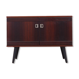 Furniture bar varnished lan on wheels, dating from the 60s. Dimensions (l/p/h): 88/39/77 cm. Height part furniture: 48.5 cm. Good general condition with the presence of some traces of time pass.