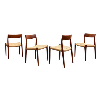 This elegant set of four SQ-AL model chairs was designed by Willy Rizzo for his Maison Willy Rizzo during the 1970s, perfectly embodying the refined and architectural aesthetic that characterizes the designer’s production in that period. The chairs feature an essential geometric structure entirely made of brass-plated steel, whose clean lines and rigorous proportions reflect the strong influence of modernist architecture and the sculptural language typical of Rizzo. The structure is defined by a continuous profile that simultaneously outlines the legs and the backrest, creating a composition that is visually light yet at the same time solid and perfectly balanced. The linearity of the metal structure emphasizes the purity of the design and highlights the careful workmanship of the surfaces, with the warm brilliance of the brass interacting with the softness of the upholstery. Seat and backrest are upholstered in the original vintage alcantara in an elegant beige/camel tone, a material that gives the seating a pleasant tactile softness while at the same time conveying a sophisticated character. The contrast between the velvety surface of the alcantara and the luminosity of the brass-plated steel creates a very refined balance between luxury and minimalism, a distinctive hallmark of Willy Rizzo’s work. The SQ-AL model perfectly represents Rizzo’s ability to combine precious materials with an extremely rigorous formal language. The proportions are compact and the silhouette is intentionally essential, allowing the metal structure to become the dominant element of the design without sacrificing comfort. The set presents itself in excellent vintage condition, with the alcantara upholstery well preserved and the brass-plated steel structure showing only slight signs of time consistent with age. These chairs constitute a refined example of Italian design of the 1970s and can integrate perfectly in both contemporary interiors and more classic environments, making them ideal around a dining table or as accent seating in a sophisticated living space.