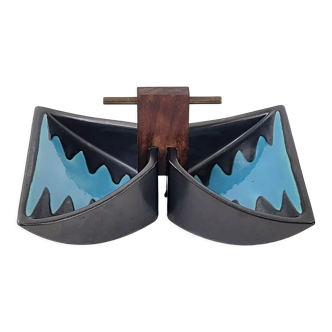 Moulded pressed glass salt shaker decorated with birds, circa 1920-1930, 1 fele on the underside inside the glass.