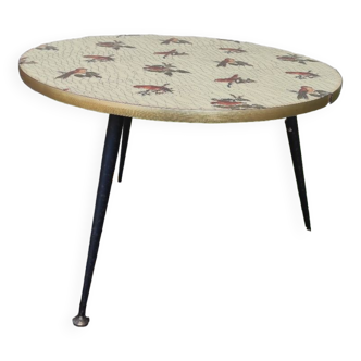Small compass-legged coffee table. Vintage and retro coffee table! It's very nice! Some signs of wear are visible in the photos: added charm! Dimensions: 40.2 x 60.2 x 42.2 cm.