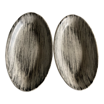 White striped bowl by robert picault, vallauris. Dimensions: 6 cm in height and 17.5 cm in length and 11 cm in diameter. It can also be hung on the wall, there is a hole behind the handle. Excellent condition.