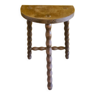 Very pretty tripod stool in beaded wood and vintage half-moon seat. Will serve as an occasional seat or an elegant plant holder width 34cm depth 27cm height 46cm has some traces of wear related to time see photos.