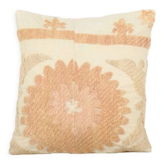 Breeze cushion cover. Bohemian style cushion cover made of soft cotton with white palm embroidery and 4 pompoms, zipper closure. A great way to add texture to a bedroom or living room. This beautiful bohemian cover is hand-woven with love on the island of Bali. Dimensions: 40x40 cm. White colour. Material: natural cotton.