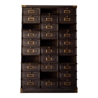 Contemporary light wood craft furniture, postman's shelf, mail holder or other, to hang or place. It is composed of 15 compartments each with a label and 6 zinc drawers. Dimensions: 78 l X 25 d X 85 h. Dimensions: compartments: 23 l X 20 d X 18 h. Dimensions: drawers: 18 l X 20 d X 6 h. Our nuggets have all had a first life. Any damage caused by time is visible in the photos or indicated in the advertisement. Available in Montreuil by appointment. Delivery to Paris and the near suburbs: price depending on the nugget and the delivery location. Delivery possible by carrier for all of France (excluding Corsica and overseas territories): on estimate.