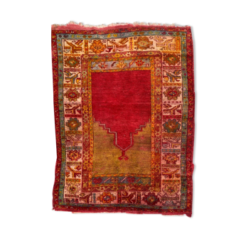 Upgrade your floors with this high-quality antique turkish rug, hand-knotted in 1940 with hand-spun, vegetable-dyed wool and cotton, woven by some of the finest rug artisans. Perfect for any modern or traditional interiors, bedrooms, living rooms or even entryways, this rug is sure to uplift any room it is introduced to. Featuring a vibrant mix of orange and yellow woven in an asymmetric design. The warm red/ orange background forms a gradient down the rug creating the backgrop for a detailed repeat pattern border and an abstract central design. This fine wool rug was handmade in turkey in the 1910. Made with hand-spun wool and cotton that was dyed using organic vegetable dyeing techniques, used for generations. Perfect for any contemporary or traditional interior, suitable for use as a bedroom rug, home office rug or even large entry-way rug. This elegant tribal wool rug is in excellent condition, clean and ready for use in any home. Chr121. (antique turkish prayer rug 138x106).
