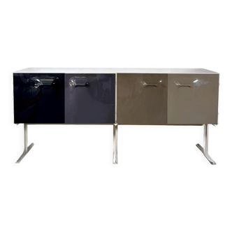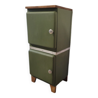 Selling a vintage industrial filing cabinet with drawers, in its original condition. It shows some minor rust, but nothing serious or perforated. The four casters are functional. The cabinet can be repainted if needed, or varnished with a clear anti-rust paint to maintain its original aged appearance. It's a Strafor-style cabinet, but without a nameplate. Dimensions: Width 48 cm, Depth 60 cm, Height 80 cm.