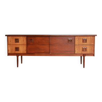 Rosewood veneer small sideboard with vinyl records storage and drawers. Very good vintage condition.