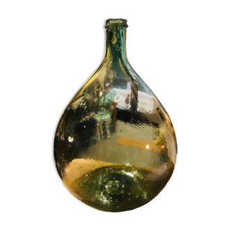 Old dame jeanne viresa 15 liters green glass 42 cm high 30 cm diameter in its own juice.