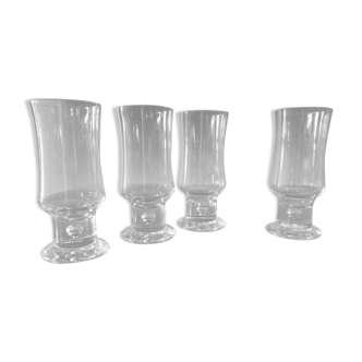 The set of five glasses was made in the 1970s in Italy. A set of five vintage crystal glasses from the 1970s, adorned with a subtle silver rim. The glasses are perfect for serving water, juices, drinks or cocktails, whilst also serving as an eye-catching decorative feature on a table or display cabinet. Ideal for lovers of vintage glassware and collectors of 1970s design. Condition: The items are in their original condition and may have minor scratches and normal signs of wear. Technical data. Height: 15 cm. Width: 6 cm. Depth: 6 cm.