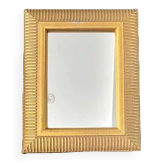 This charming French Riviera rattan mirror, handmade in France circa the 1960s, features a warm, timeworn patina that adds character and charm. Designed in the style of Vivai del Sud, it is perfect for placement above a small console table, as a guest bathroom mirror, or as part of an eclectic wall of mirrors. The mirror brings a touch of Mediterranean flair to any space. Dimensions: Total height 40.5 cm (15.95 inches), width 30 cm (11.8 inches). Mirror glass height 28 cm (11 inches), width 18 cm (7.1 inches).