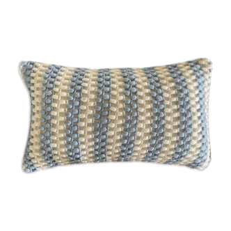 Cushions made from hand-crocheted vintage blankets for the front and linen woven in France for the back, in order to breathe new life into dormant fabrics. Born from a responsible approach, the granny square covers make the bright colors stand out on their thick ecru linen. Each piece is unique and can decorate an armchair alone or in accumulation. As these are authentic and rustic pieces, they may have irregularities in the crocheting which are completely natural and testify to the authenticity of the product. Crochet made by marguerite. Like a surprise bag, each cover is unique. There may be slight variations in the patterns or colors. Each cover is supplied with a cushion made in France, in the Ardennes. Dimensions: 30 X 50 cm.