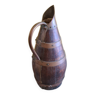 This tavern set has been fully restored. It consists of an oak bar and a fir glass cabinet. The bar features a barrel-shaped beer tap that can be put back into operation. Its stone worktop includes a drip tray. The front is adorned with a brass bar and carved wooden floral motifs. Two large storage areas at the rear complete the bar. The glass cabinet has four shelves and a decorative cornice. Bar dimensions: Depth 56 cm + 13 cm for the brass bar / Height 101 cm + 59 cm for the barrel. Glass cabinet dimensions: Width 178 cm / Height 148 cm / Depth 21 cm.