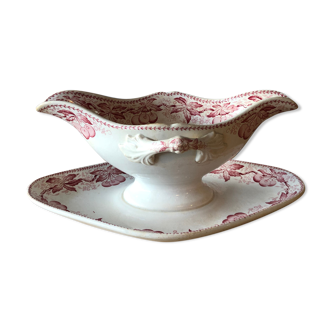 Small antique planter vase in earthenware with slip decoration, signature on the underside possibly from the Fives Lille pottery by Gustave De Bruyn, late 19th century. Decorated with violet flowers. Art Nouveau style. Dimensions: Width 21 cm / Height 12.5 cm. Several small chips, see photos. Carefully packaged and well protected for shipping.