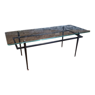 Bronze coffee table from the 1960s. New smoked glass top, with some oxidation. Signed "broncz" on one of the legs. H 35 x W 121 x D 61 cm