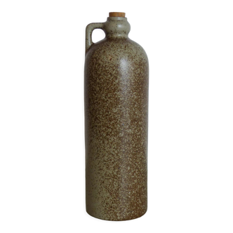 Ultra-clammed stoneware oil bottle (50%) with an ergonomic grip. Made by me using the coil technique with local Belgian clay. Raw exterior. White glazed interior. Fired at 1200 degrees. Unique piece. Capacity: 750 ml. Sold with a cork and stainless steel pouring cap.