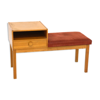 Scandinavian design furniture from the 1970s, furniture / entrance bench, has a leather bench and a higher part with a storage compartment and a drawer. Beautiful scandinavian furniture in good condition.
