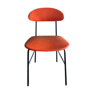 Designer armchair in black metal and blue fabric. 1980s. Very comfortable. Some signs of wear (rust) on the structure.
