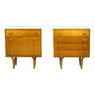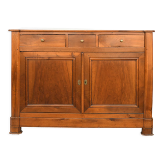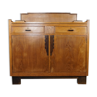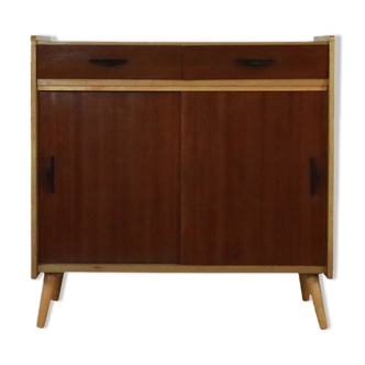 Magnificent buffet dating from the 60s, varnished wood. It is composed of two drawers in the upper part and two sliding doors, gold and black handles. Very original vintage design, furniture in very good condition, some small traces of wear of time are visible.