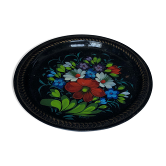 2 very pretty little vintage decorative trays in painted tin, probably from the USSR. Delicate bouquet of flowers and berries topped with a stylized bird. The patterns are very slightly different. Perfect as a pocket emptier or to take a cup of tea and a biscuit. They are in very good vintage condition, few signs of use. Dimensions: 12×18cm. Very beautiful colors. Carefully sent.