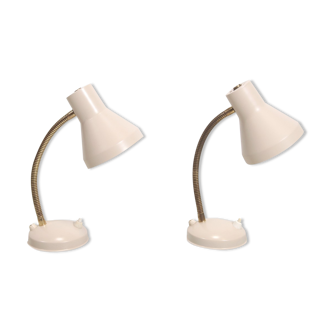 Original pair of pine-articulated bedside lamps. Scandinavian style. Some traces of use on the golden metal... And on the pedestals... Normal...