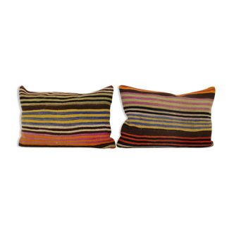 These beautiful 14" X 22" pillow covers were made from an authentic vintage turkish carpet woven by hand in the 1960s. Bright colors of wool adorn the front of the pillow, and the cotton back has a hidden zipper case. Makes a gorgeous addition to any sofa, chair or bed. Handmade in turkey. The measurements are about 14 "x 22" inches / 35 X 57 cm. Please note: The cushion insert is not included. Wash with care. Depending on the screen of your device, the colors in reality may differ a little from the product images displayed. Items are expressly shipped. Customs duties may apply. Products are subject to availability. » reference af692.