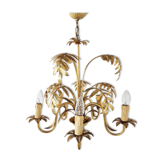 Metal chandelier painted 3 colors, florentine style, leaf decoration, 5 lights, very good working condition, verified electricity.