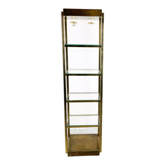 Small glass and brass showcase with three shelves, to highlight your collections, netsukés, okimonos or other showcase objects, mirror bottom, in very good condition; it can also be placed on a piece of furniture thanks to its four legs.
