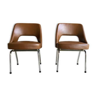 Red fabric chair in the spirit of knoll year 70. chromed metal feet. In good condition. The foam seat breaks down a little because of its age. Some have a little addict on the side. Dimension: l49 cm X h82 cm X d49 cm. Unit price but there are 8 in total.
