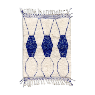 Wool rug - unique piece Royal blue & white wool rug hand-woven in the Middle Atlas. The specialty of this first cooperative with which we chose to work: very dense and thick carpets. Dimensions: 80 x 150 cm