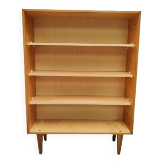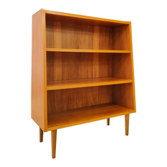 Vintage bookshelf in oak veneer, pearl grey interior, pearl grey metal legs, 4 fixed shelves, waxed finish. 1950s bookshelf with some signs of age, straight back leg, furniture with clean lines, easy to live with. L 86 cm, D 36 cm, H 143 cm.