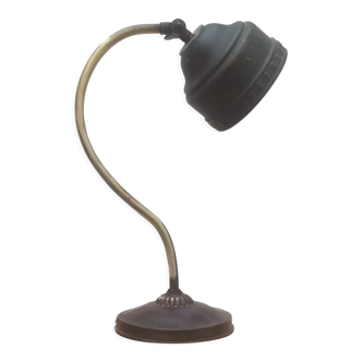 Lamp called banker or notary in brass and green glass, functional. Height: 36cm width: 27cm depth: 29cm. Note: gold metal slightly pricked (see photo).
