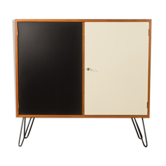 Article details. Three-part wall unit from the "profilsystem" collection by flötotto from the 1970s. High-quality frame made of solid beech with two doors, seven shelves and original formica-coating in brown. Easy wall mounting with six hook screws. Quality features: Good workmanship. High-quality materials. Made in germany, manufacturer: flötotto (branding inside) Condition & size. Good restored condition with slight signs of usage. Width 165 cm. Height 74 cm. Depth 45 cm. Solitary element large: w 60 cm, h 74 cm, d 45 cm. Solitary element small: w 45 cm, h 74cm, d 30 cm.