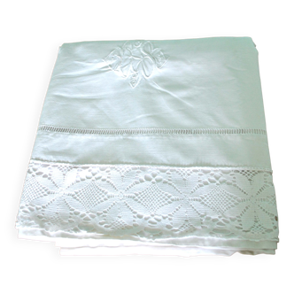 Old sheet 310x220cm - embroidered return, in good condition (it may be that small stains on our linen items escaped during washing), linen checked, washed and ironed.