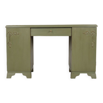 Small Chinese lacquer desk in its original condition. Traditional decorations of characters on a landscape background. The two interiors (left and right) each have three drawers. Four small straight feet. Height 76.6 cm - length 108 cm - depth 34.5 cm. All dimensions are shown in the photos. Delivery possible.