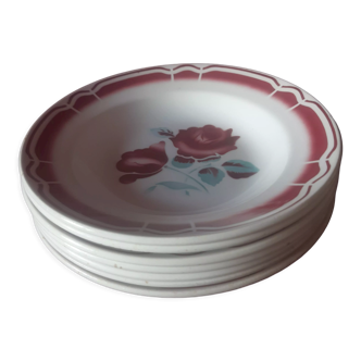 Set of 6 vintage dessert plates with floral pattern. French manufacture of the arcopal brand of the 70s. In very good condition. Diameter: 19 cm. Weight: 305 gr X 6 = 1, 830 g.