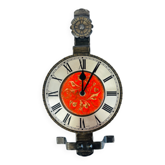 Vintage pendulum in yellow, turquoise and golden formica. 60s. No clė. Nice condition.