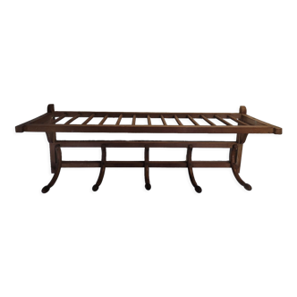 Large vintage wall-mounted coat rack in black metal and red scoubidou, good condition.