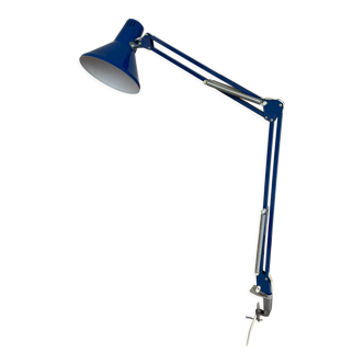 This articulated lamp of the ledu brand is a production of the 80s, manufactured in france. Perfectly functional, it is made of bright yellow painted metal, it unfolds and articulates for tailor-made lighting. On a desk, a worktop or fixed to the wall, it will always provide a suitable light. Traces of use are visible, it bears the marks of time (slight rust points and scratches, very slight lack of paint). But this lamp remains in good condition given its age! The original label is always present. Dimensions: height: 100cm, 2 arms of 40 cm.