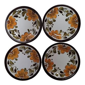 6 plates with floral patterns, in white, green, and brown tones, Argenteuil model. Boch La Louvière Belgium - hand-painted. Measurements: width: 22.5 cm, height: 2.5 cm. Condition: very good condition - the intensity of the colours may vary.