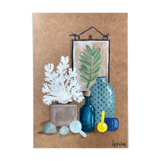 Collage on old paper inspired by Matisse's cut-out papers. It comes with its mount. A contemporary composition created in a vintage style. Colours: purple / lilac / brown. Acrylic on old paper. Size of the collage 21x31cm fixed under a purple mount 30x40cm (opening 19.7x28.5cm). A unique original dated & signed • certificate of authenticity provided. Delivered without a frame.